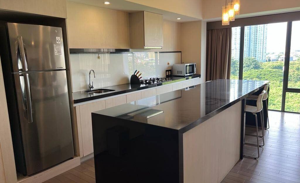 •Full Furnished : Kitchen set up and down, Island Bar, Microwave, cooker hood & kompor, kulkas, spring bed, wardrobe, meja makan, sofa, meja ruang tamu, TV, dapur kotor dan service area