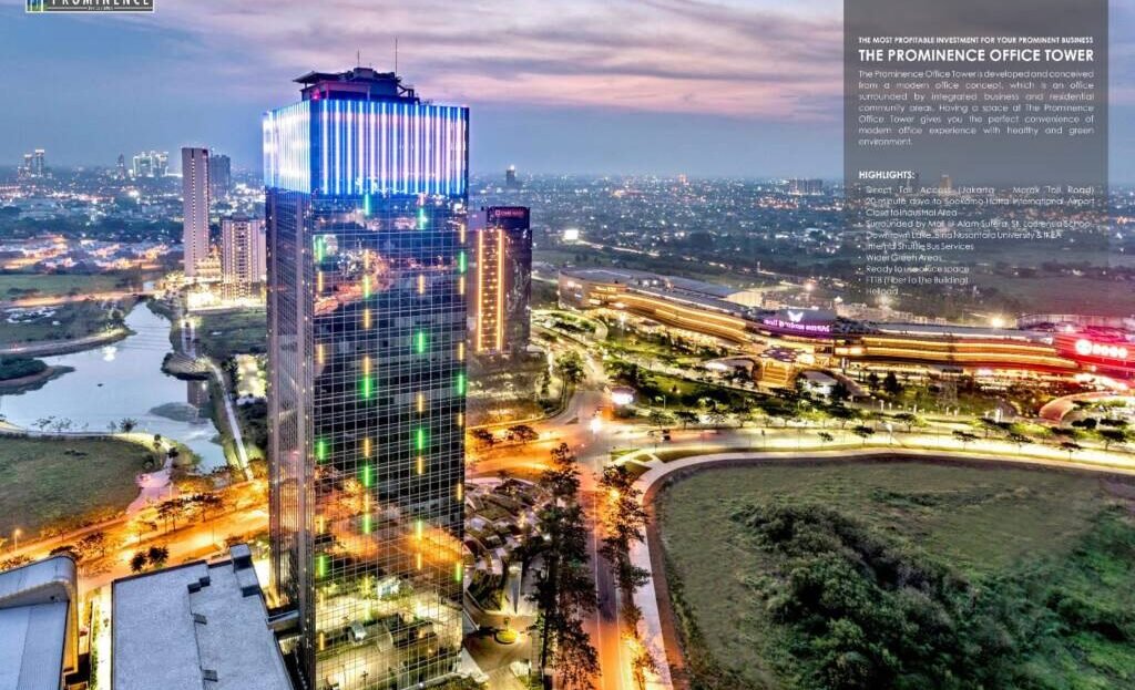 The Prominence Office Tower is developed and conceived from a modern office concept, which is an office surrounded by integrated business and residential community areas. Having a space at The Prominence Office Tower gives you the perfect convenience of modern office experience with healthy and green environment.