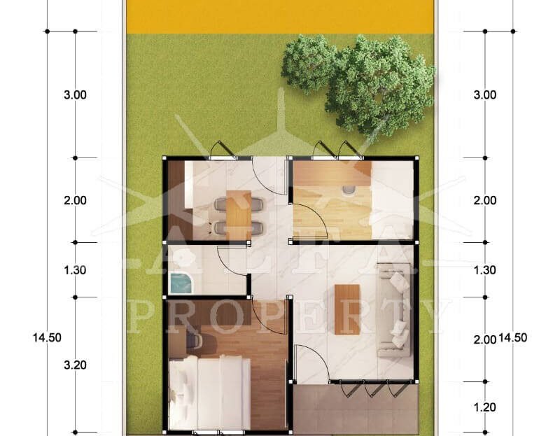 Luas Tanah 7,5m x 21,5m (161m2)