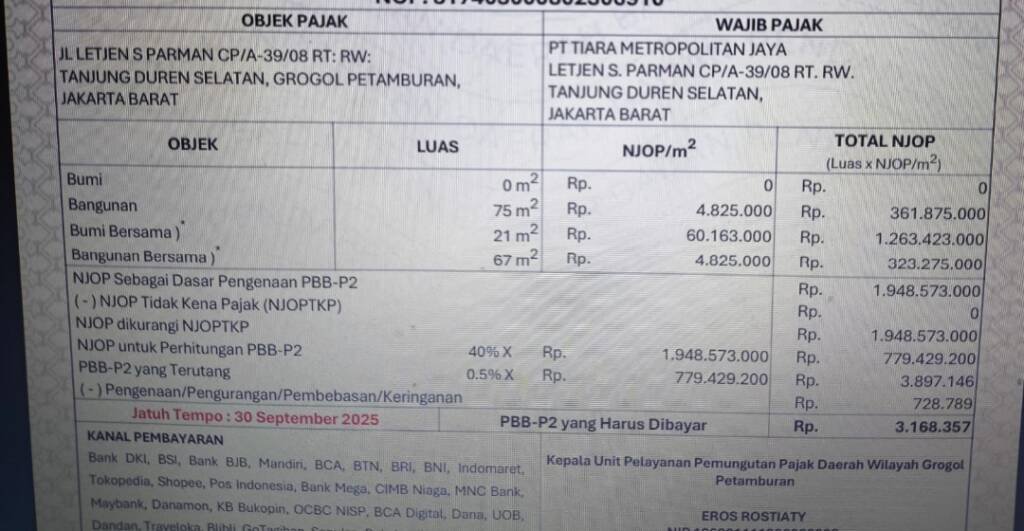 Njop 2025= Rp 1.948.573.000.-