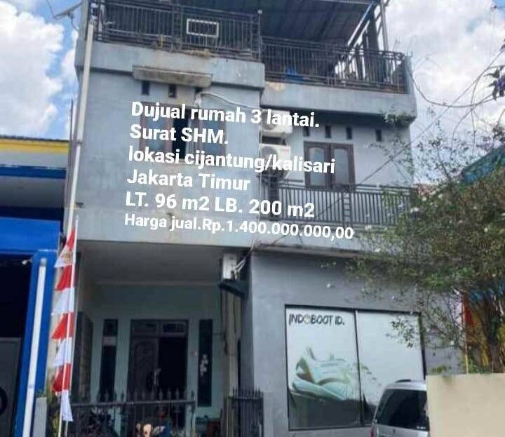 Rumah 3 Lantai daerah Ciracas Jakarta Timur di kawasan komplek perumahan Strategis dan Bebas Banjir
