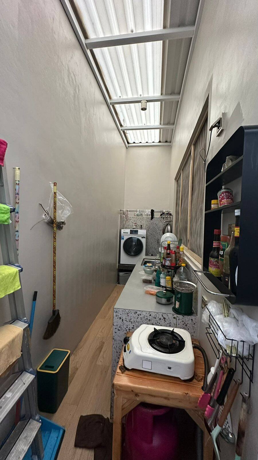 Sudah direnov dari bawaan developer, diextend buat area cuci jemur, pemisahan dapur kotor dan dapur bersih, udah dapet Kitchen Set seharga 30jt