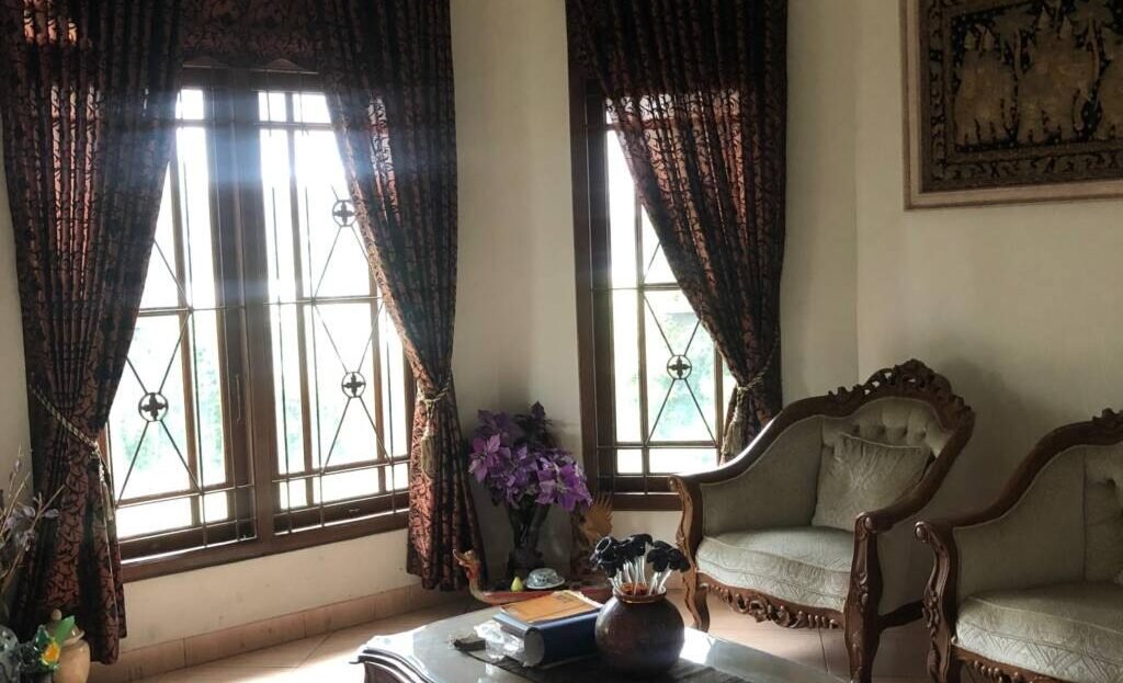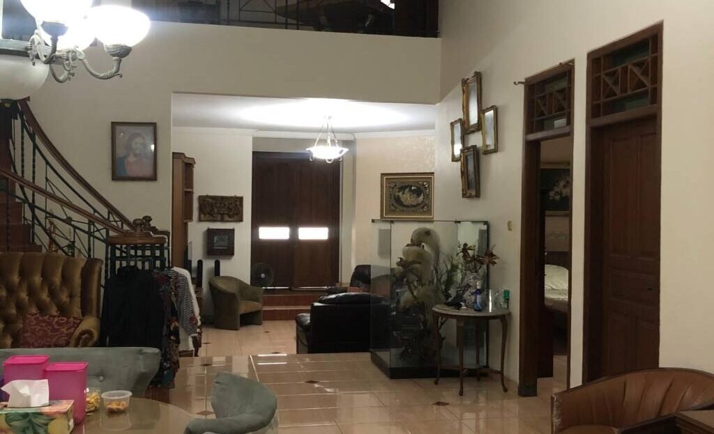 Bangunan utama : 4 KT, 3 KM, 1 KT supir, 1 ruang tamu, 2 ruang keluarga, 1 ruang makan luas dan dapur bersih, 1 dapur kotor, taman dalam, 2 sisi balkon lantai atas. 2 KT pembantu + 1 KM, gudang, garasi 2 mobil, carport 2 mobil.