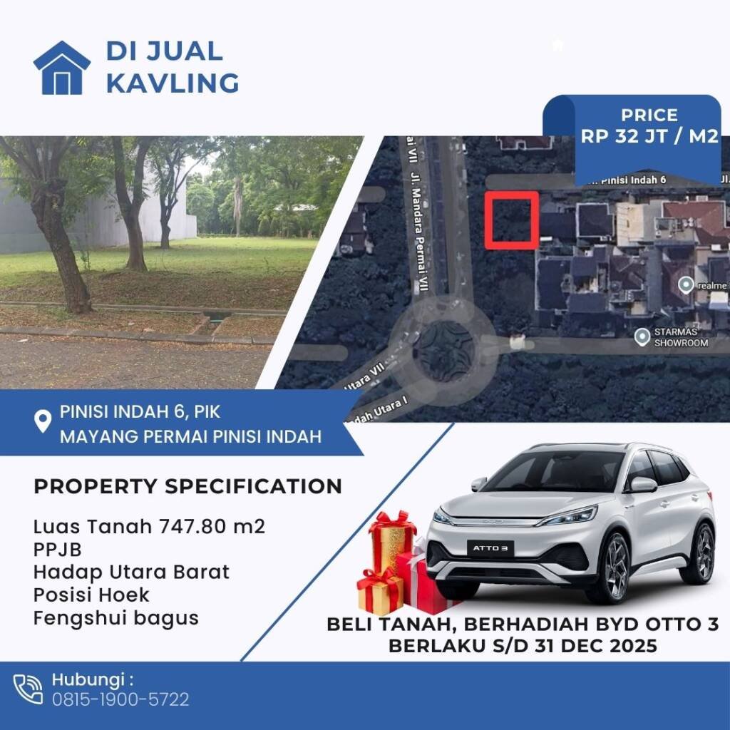 Dijual Kavling Premium di Pinisi, PIK β Hoek, Feng Shui Bagus! π₯