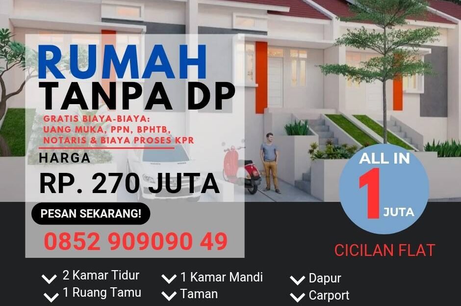 Tanpa uang muka(DP 0) cicilan FLAT sampai lunas ALL IN 1 juta sampai terima kunci dengan luas tanah 90m² type 36