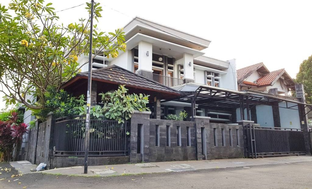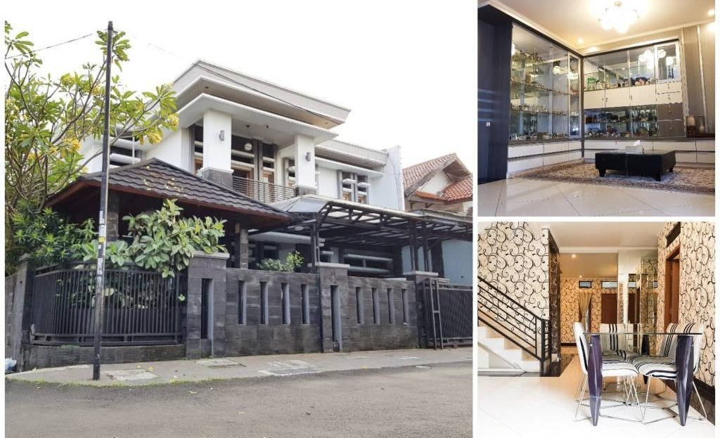 # LT 320, LB 600, 2 lantai, Total 8 Kamar: 6 KT Utama (2 KM dalam), 1 KT pembantu, 1 KT Sopir, 6 KM, Carport 4 mobil, Gazebo